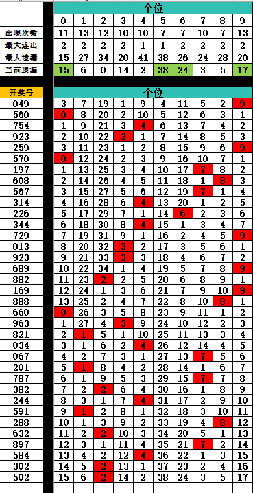 17:中间值排序(近100期)中间值排序为5346728109 *首选*>>>53467 *次选*>>>28109