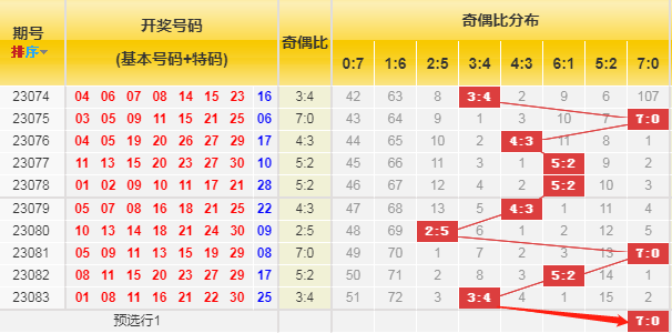 根据计算,上期奇数和值33,偶数和值76,奇偶和值差为43,看近五期差值分别为16、62、101、77、43,奇数大占上风后偶数出现回补趋势,预计本期差值会加大,根据对称走势我们要看7:0。