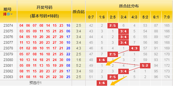 根据计算,上期质数和值为12,合数和值为97,质合和值差为85,近五期质合差值分别为76、104、53、7、85,根据斜率对称走势,故本期注意3期遗漏对称值1:6.