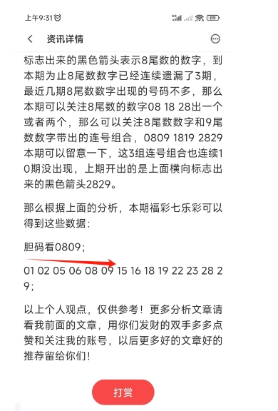 上图是福彩七乐彩上期号码分析文章截图,我最后推荐的胆码是08 09开出的是07 09,这个你们自己去看上期的号码分析文章吧。