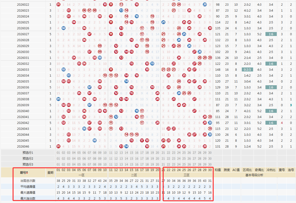第二步:逐一分析预选号15码和杀号8码走势形态