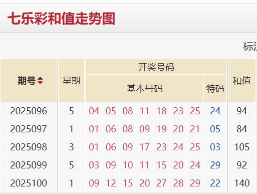 近五期七乐彩开奖号码和值依次为94→84→105→92→140。周期和值均值为103。周期和值振幅为56,周期和值修正振幅为39。基于动态平衡干预以及波动趋势衡量,本期开奖和值推测区间为64-142。基于风险对冲策略,本期开奖和值区间缩水为70-134。