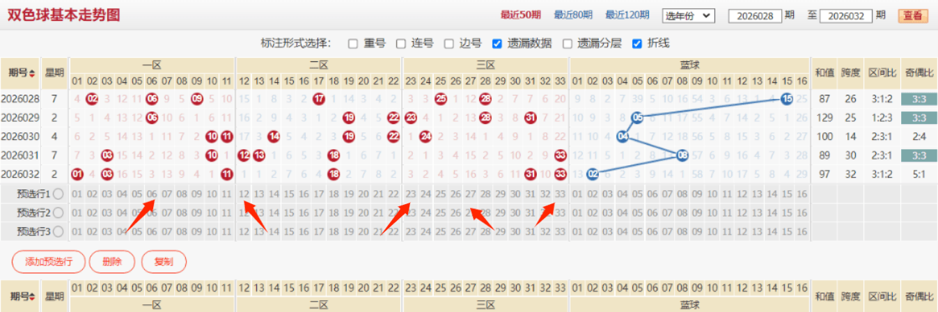 26033期双色球思路前瞻:关注遗漏趋势补充,本期再接再厉冲刺6+1