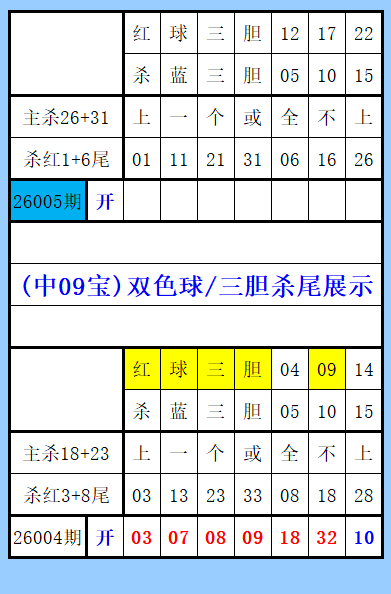 双色球(中09宝)三胆杀尾展示