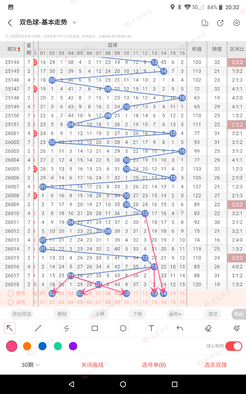 比如,018期蓝7号,017期蓝4号(属1路)那我们这期要杀的蓝号就是07+1=8大16,减16,05为本期杀号,008期错,039期-040期,060,074-075期100错,防三连错