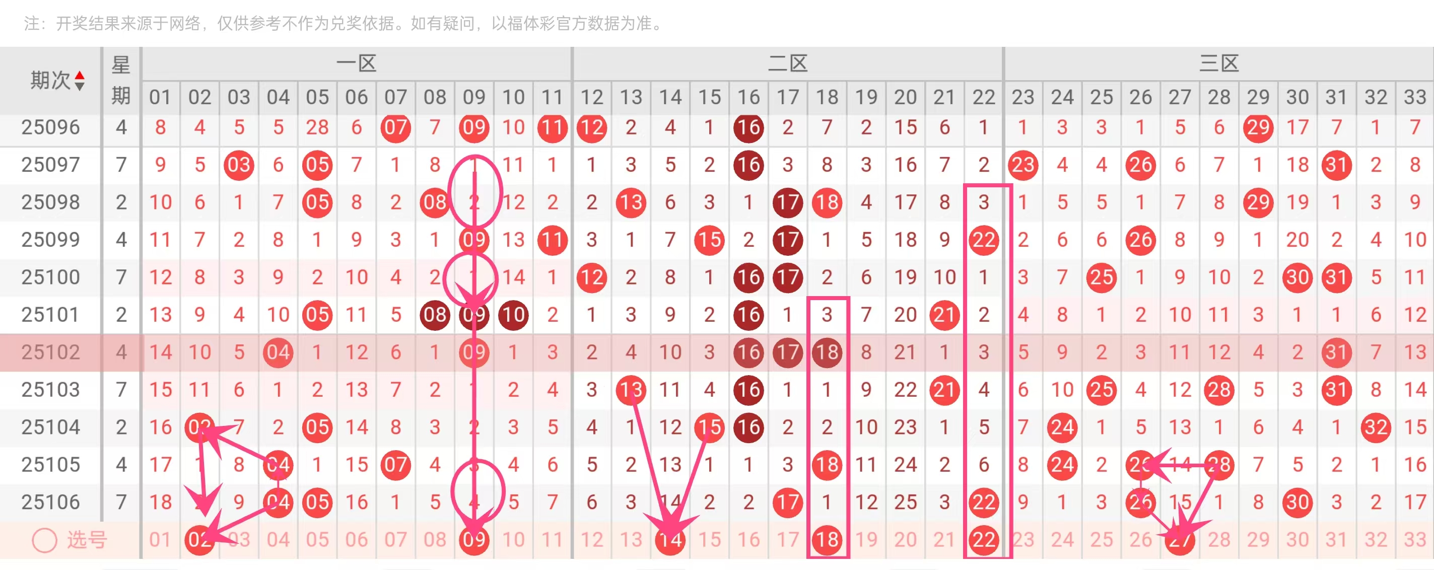 - 区间:一区(01-11)选02、09;二区(12-22)选14、18、22;三区(23-33)选27,避免断区风险。