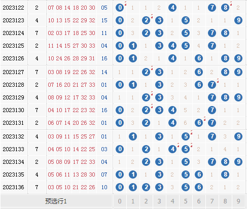 本期红球尾号开什么,需要上期红球尾号作参考,看历史下期开出。