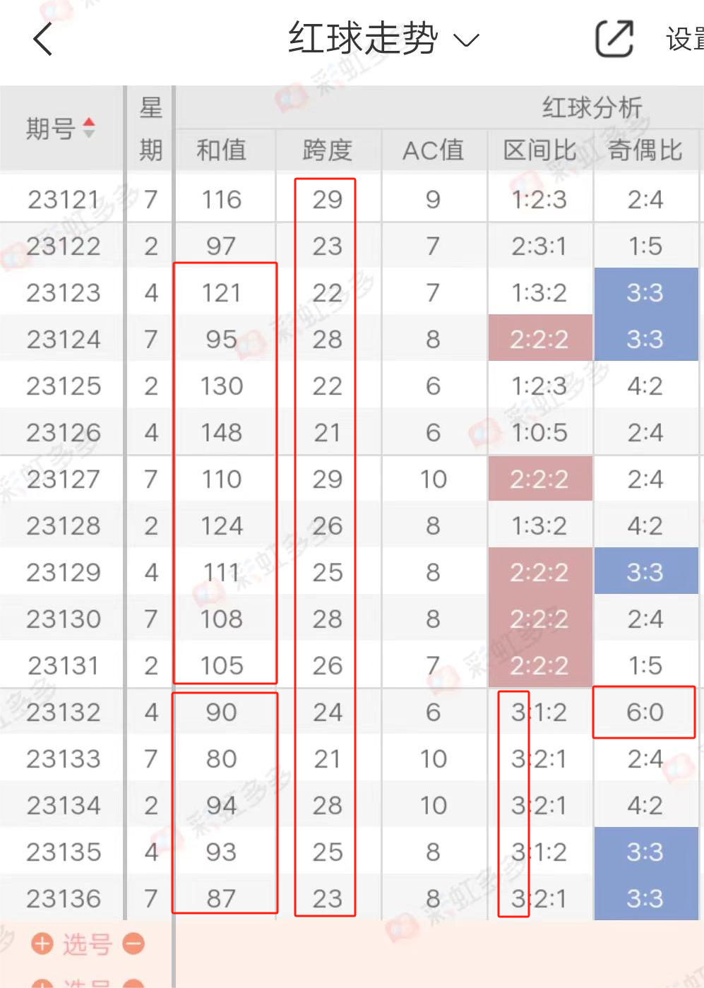 从图中可以看出,上期红球尾号012356,和它上一期的013568尾,重了五个尾号!