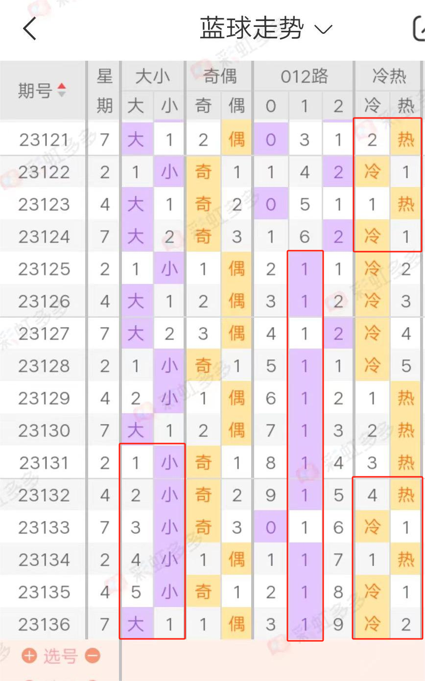近期1路蓝球爆发,占绝对的优势。上期开出的10同样是1路的蓝球。