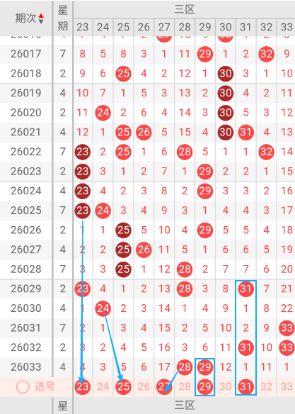 双色球三区(23-33)