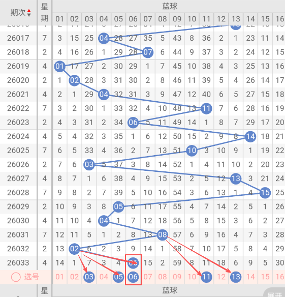 上期回顾:双色球033期开出红球号码为: