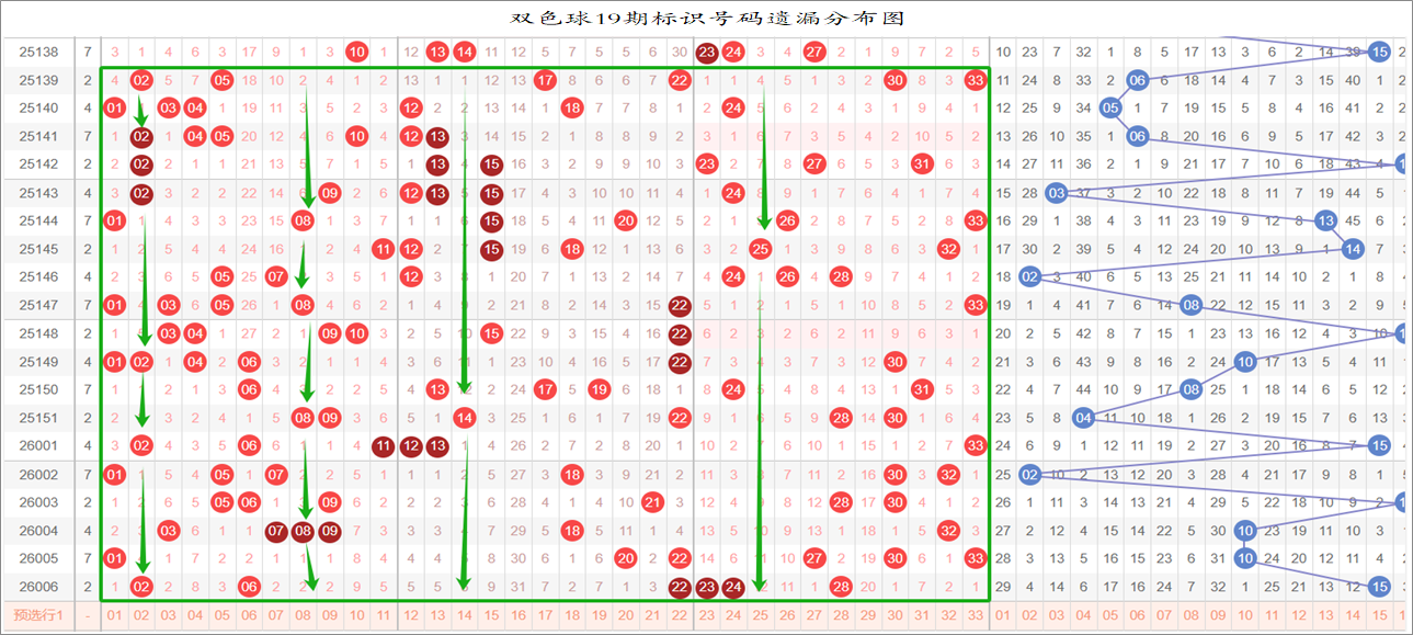 红球15码大底统计顺序:33,13,03,09,16,05,07,24,26,32,01,04,06,08,10