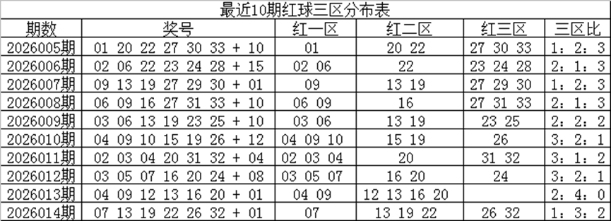 关键词六:红球三区分布: