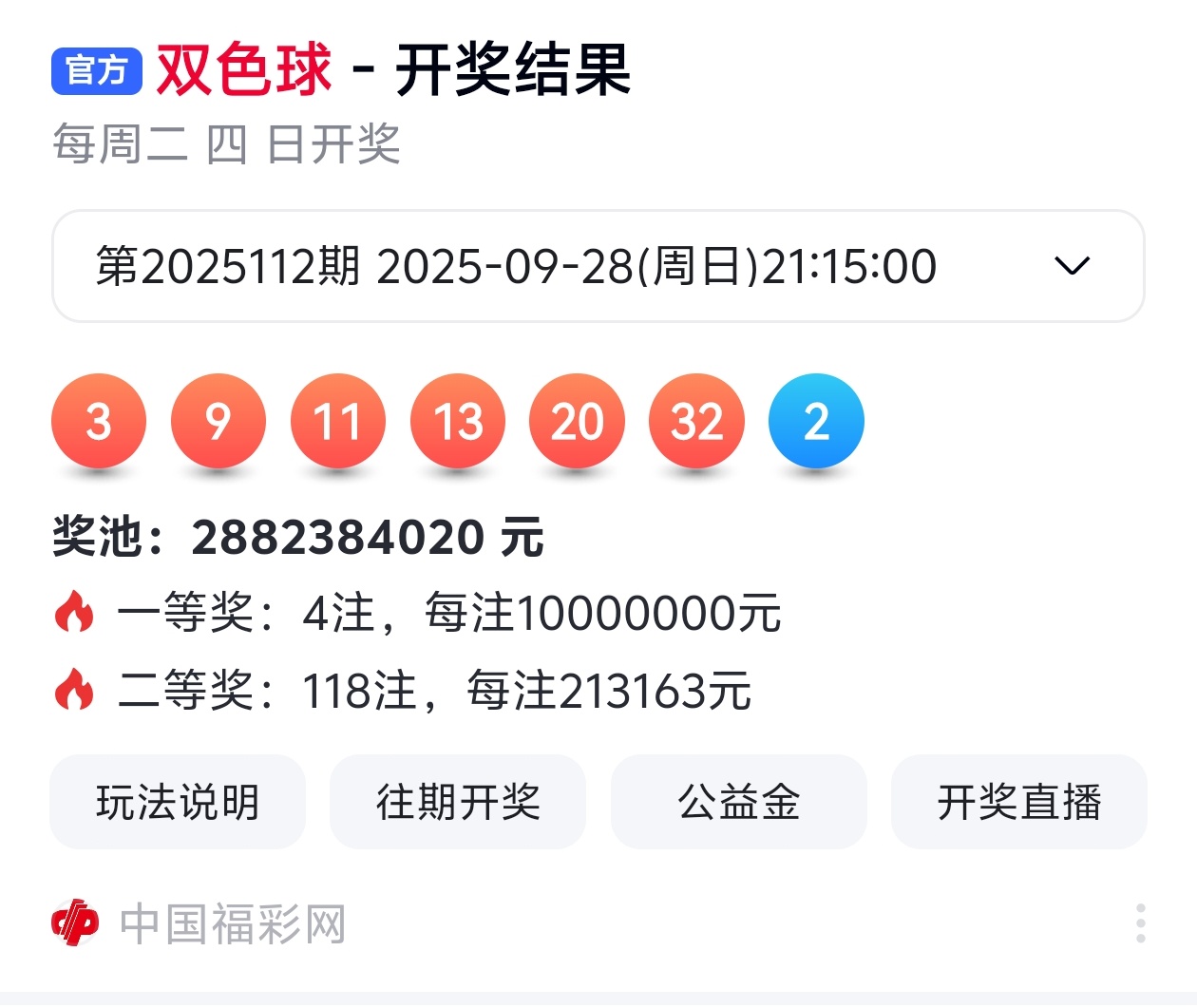 下面是我对2025113期福彩双色球的分析和预判,希望通过我的分析能让大家今晚大红!福彩双色球上期开奖号码如下图: