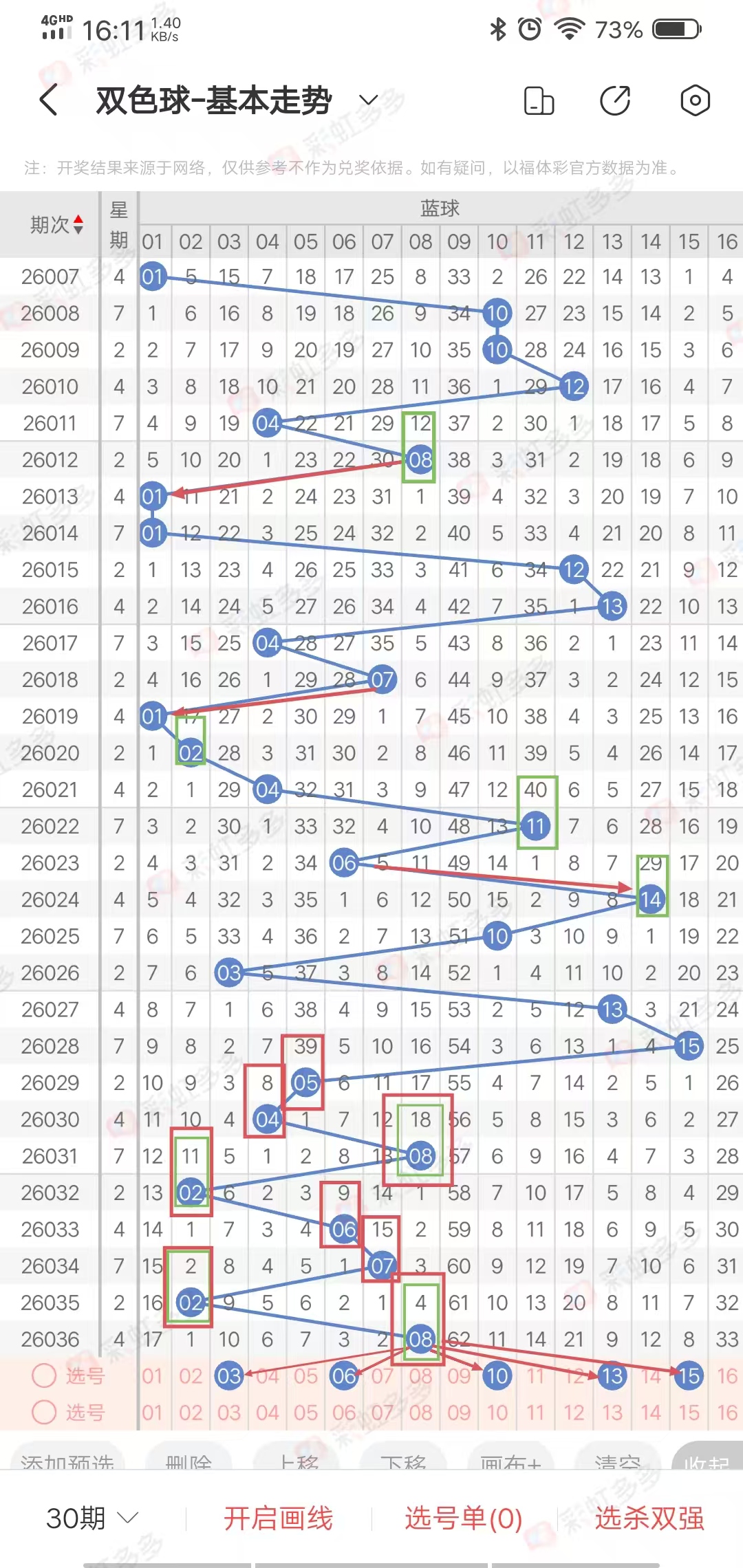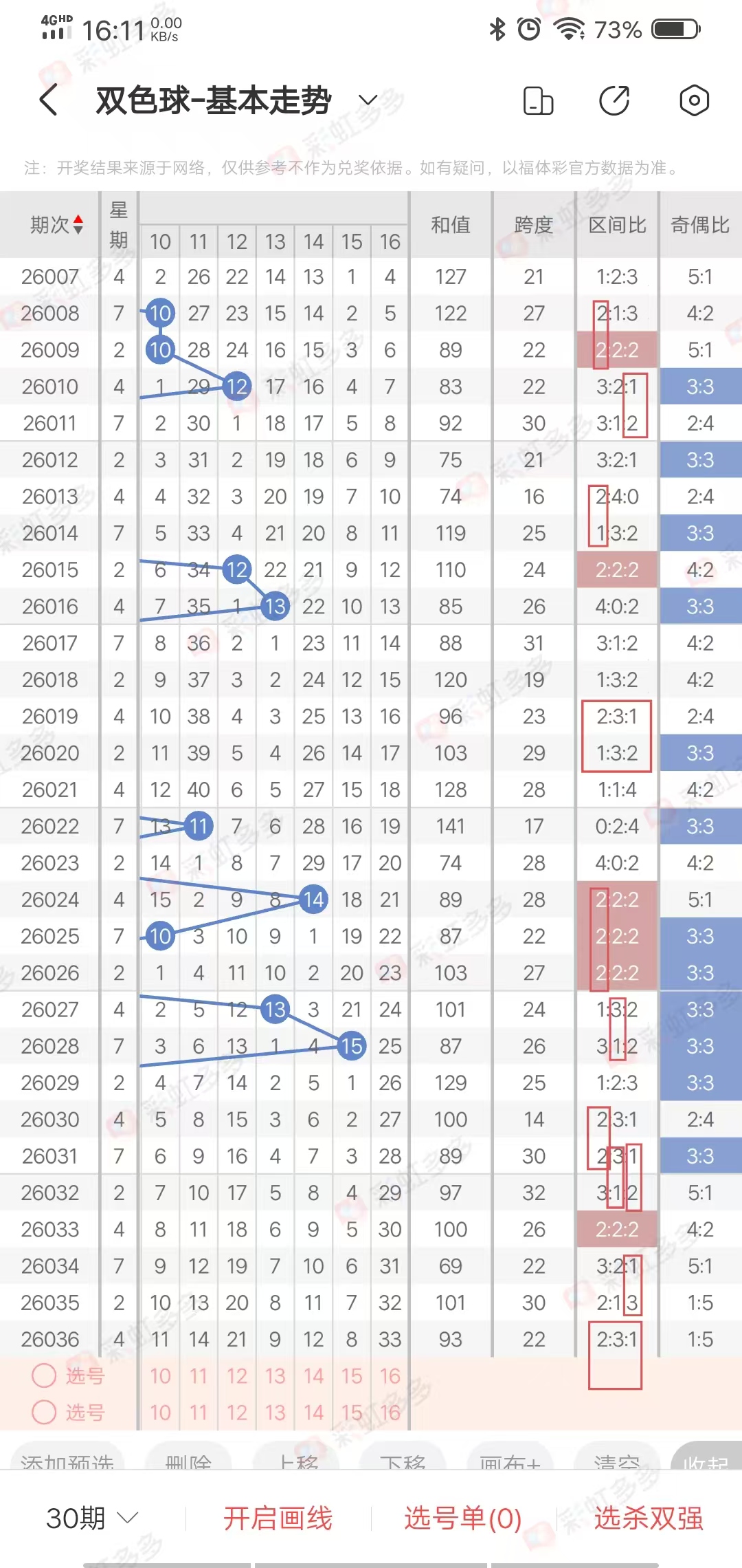 热号多出1.2.3.4期,冷号多出1.2.3期,本期重点关注冷号(遗漏十以上),重点选134区,偶数有连出,2路少3连出,选10路,综合:蓝10.13.15.6.3,蓝区杀号:2.5.8.11(目前对8期)
