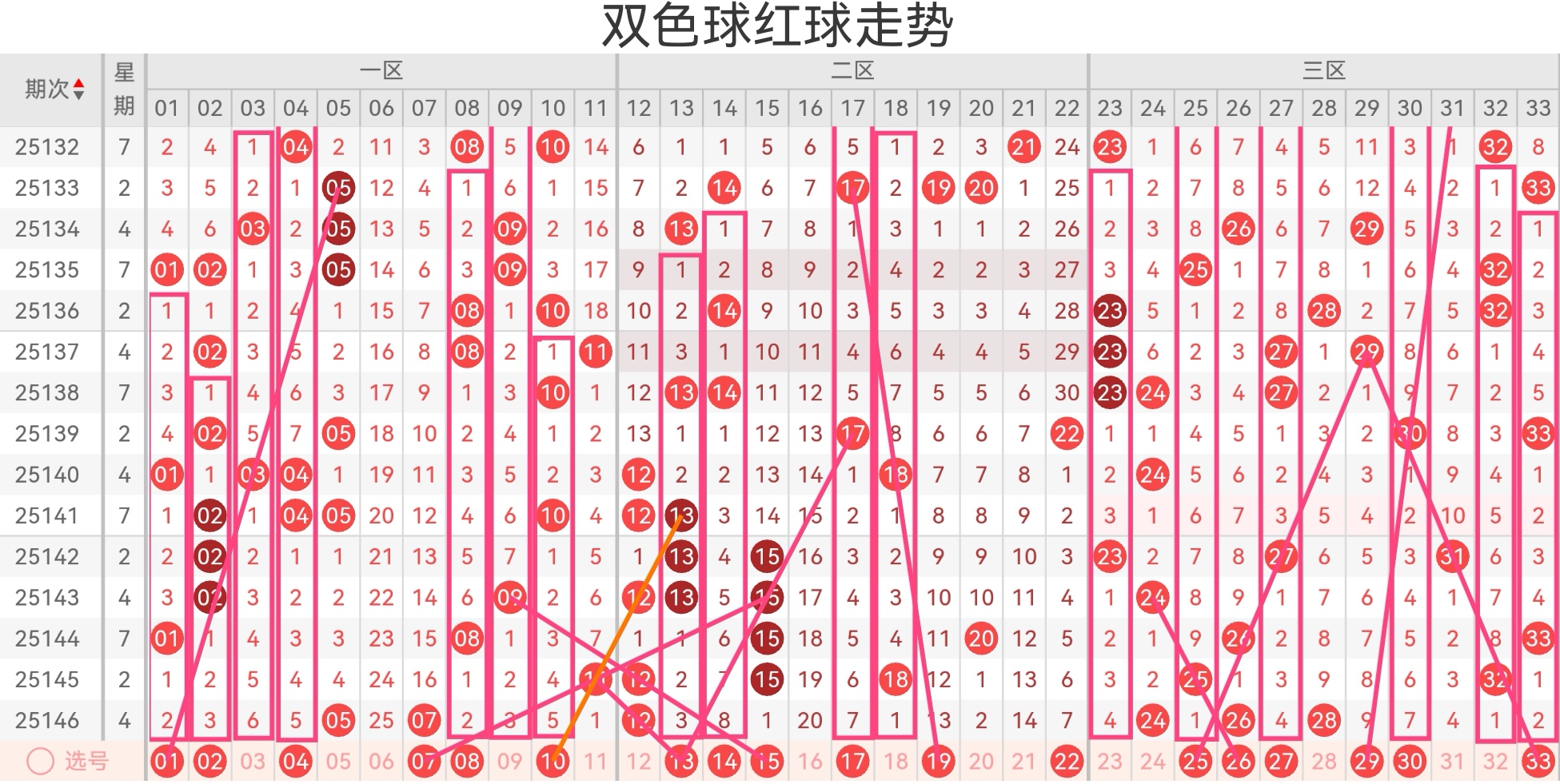 双色球第25147期基本走势分析如下: