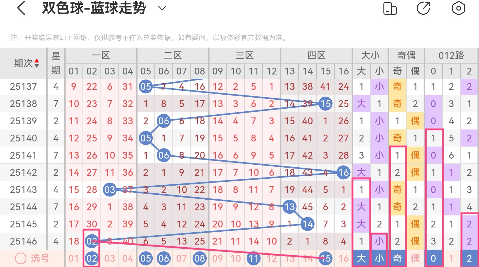 25146期:凤尾正确,胆码二中一,杀五红正确,杀五蓝正确