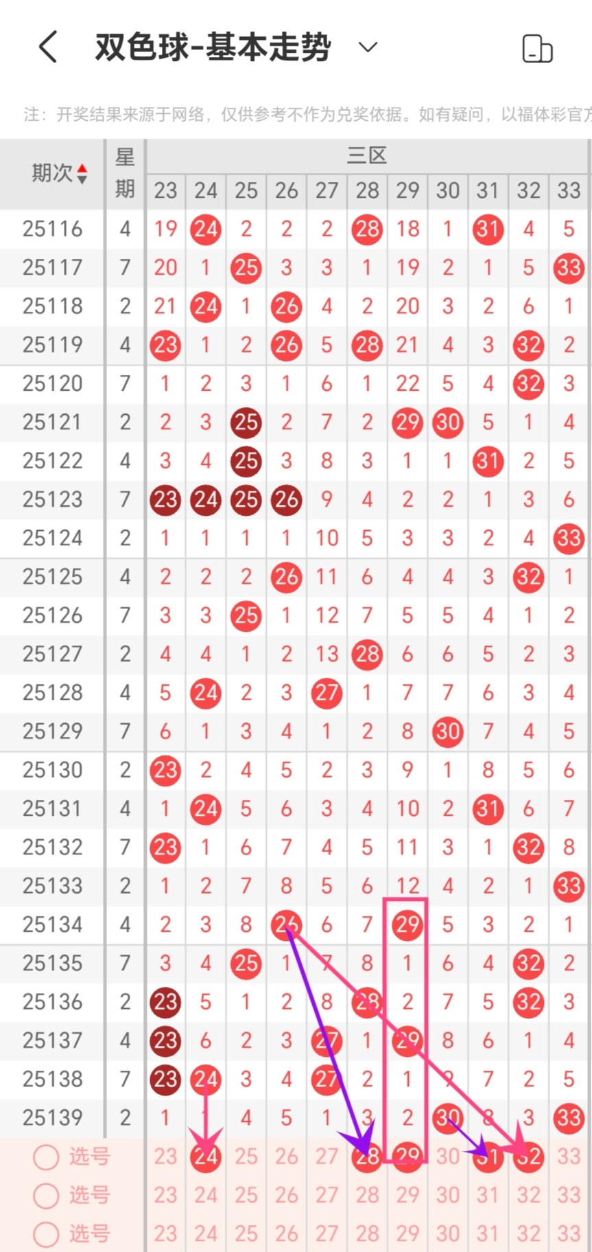 各位兄弟姐妹们大家好,我是nice,我喜欢研究数字的走势规律以及数据分析,通过同期次、同日期、同星期奖号等等出号规律进行杀号和做数据条件,红球杀号的准确率和稳定度都相当不错,首先通过上面的模块进行杀号可以做到杀红球12-15枚,然后将杀号带入到数据条件中进行选胆,这种方法屡试不爽帮助自己排除很多不必要的号码,将红球选号的数量控制在10-12枚,结合红球杀号带入到数据条件中选出的胆码,做胆拖组合控制成本