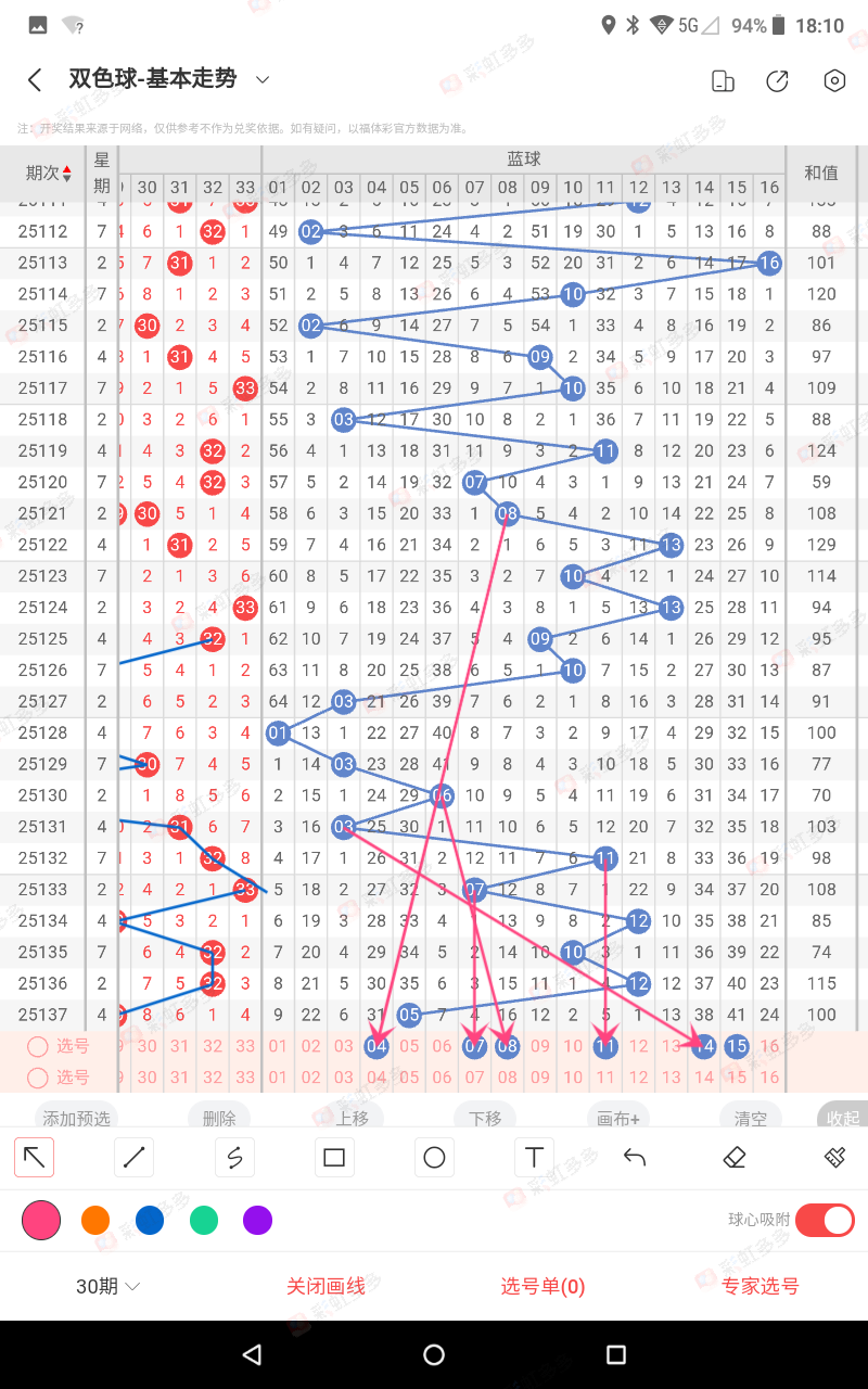 通过以上规律,近期表现为近10年同期,开球多的路数可以不考虑,(124-125-127-128-133-135-136期开球多的,路数错,)直到错为止因此138期不看0路蓝色,但本期防错