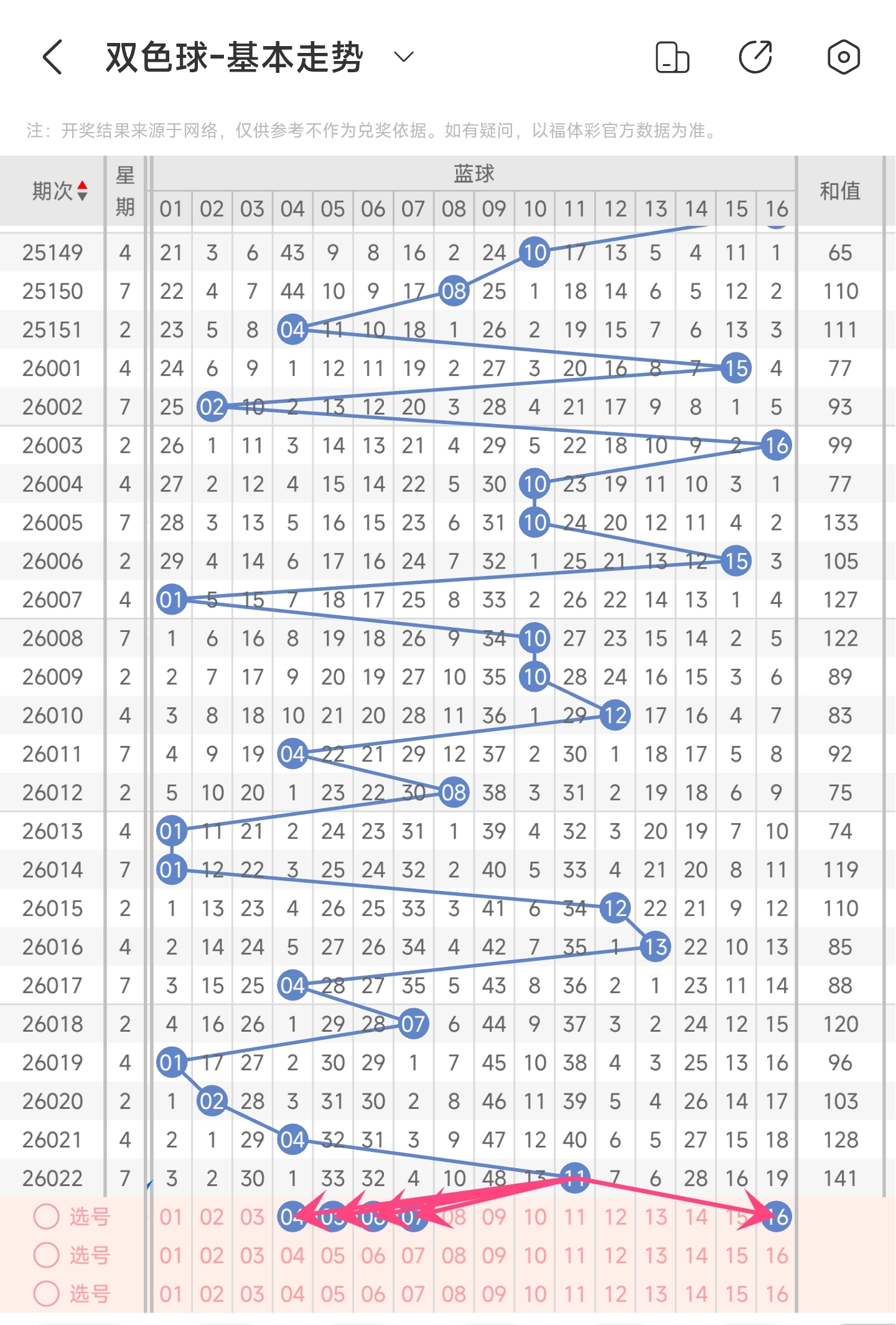 蓝球推荐:4,5,6,7,16。