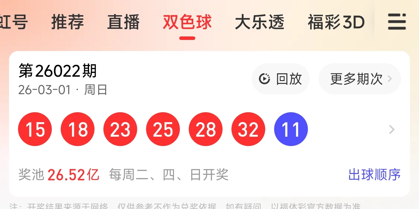 第26022期双色球文章中推荐中命中15,28,31等3个红球,蓝球命中11。