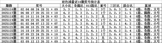 上期蓝球开出0路、奇数、大号:09,近10期蓝球012路比为3:5:2,奇偶比为7:3,大小比为7:3,本期蓝球注意号码04、06、07、08、10。