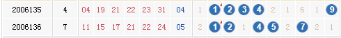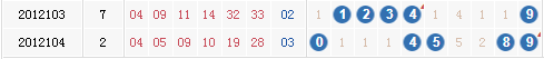 上期蓝球号码04为一区号码,小码,偶数,为1路的号码。