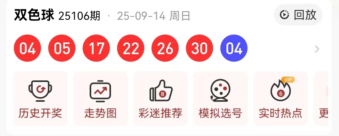 先来回顾一下第2025106期的双色球开奖结果:04 05 17 22 26 30+04,以下是对本期数据的详细分析: