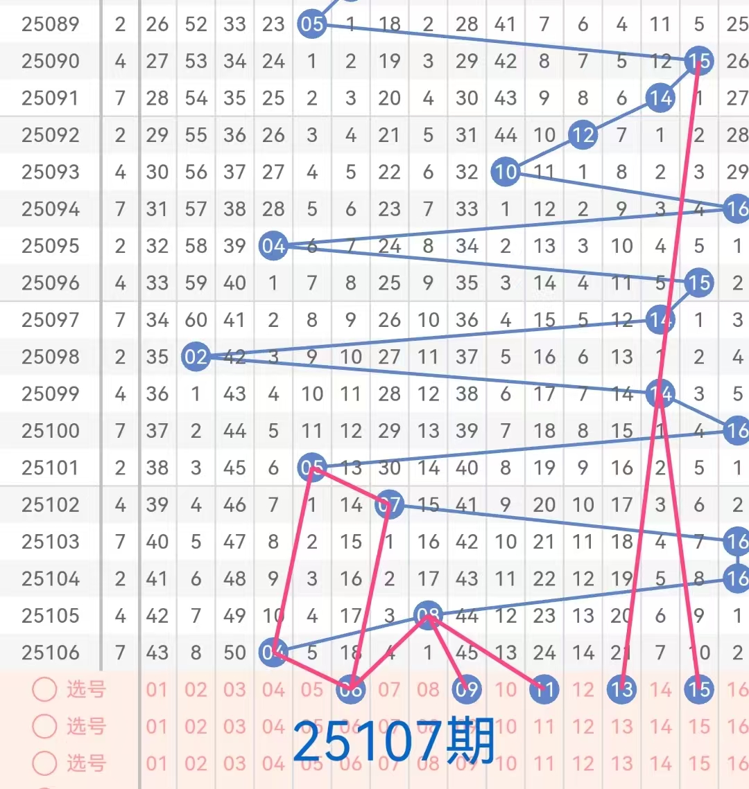 后区号码范围为01-16,根据历史数据分析,后区号码的出现具有一定的规律性。以下是对后区区间的具体分析: