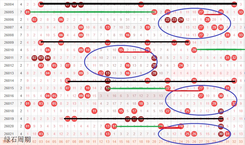 如图所示:体现的是3个局部走势的发展周期,圆圈为密集处的填空,本期定性为新局部走势4期,主力填空第2期架构填空第1期,定性蛋跨21-31,大小均衡或者大号多开。