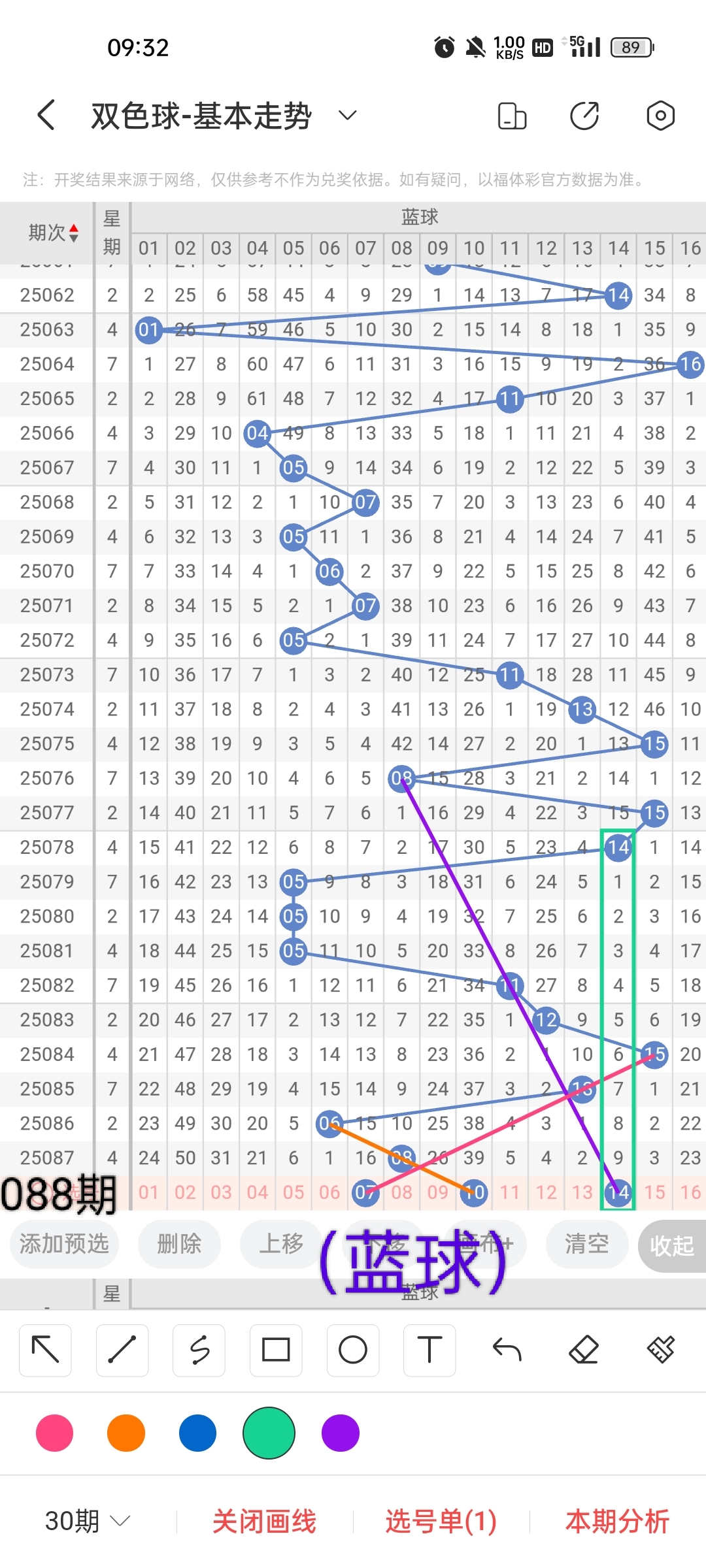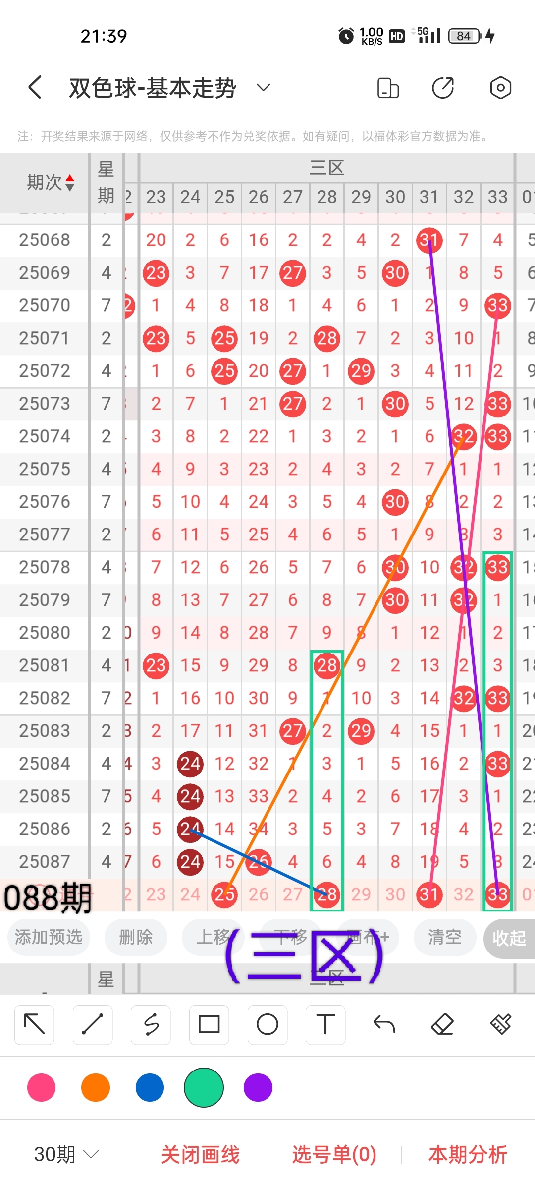 通过以上对上期的简单回顾,下面进入双色球第2025088期(下面简称本期)的选号分析: