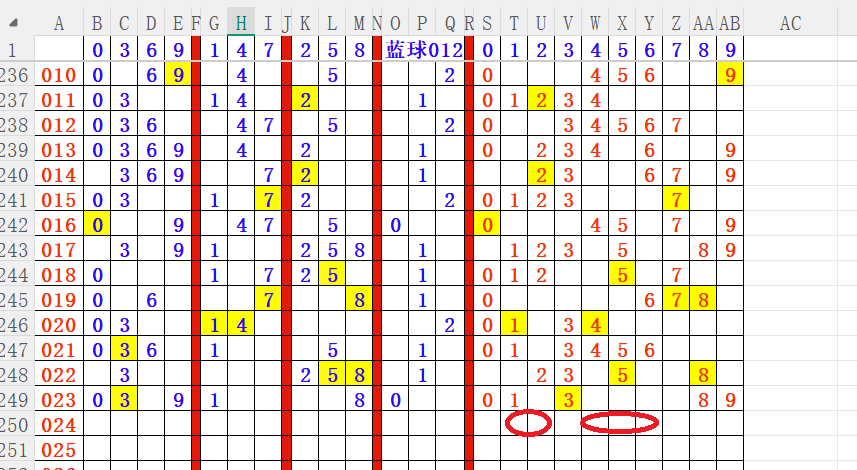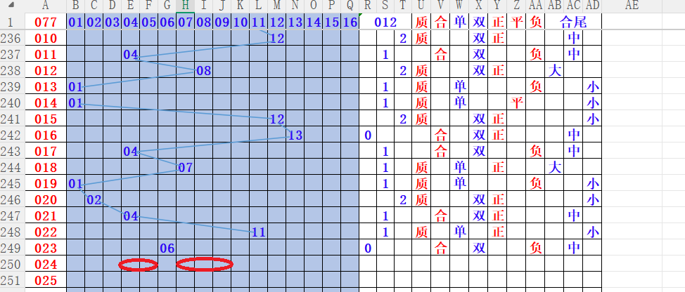 如上图4,012路分析012路,本期重点10路。重点     04 05 07 08 09