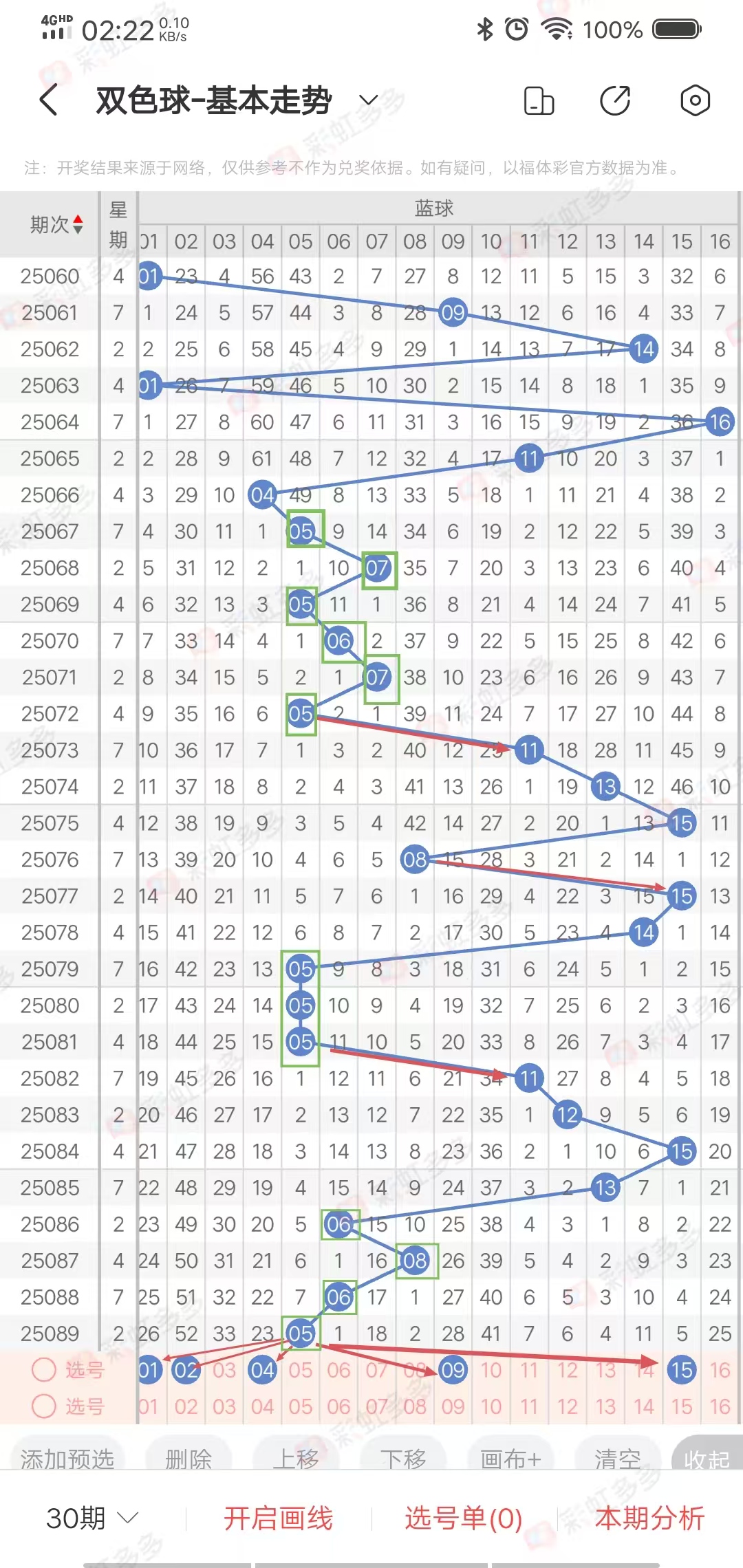热号多出1.2.3.6期,冷号多出1.2.3期,本期重点关注热号(遗漏十以下),重点选134区,12路,奇数连出,综合:蓝9.1.4.15.2,蓝区杀号:5.6.7.8(目前连对0期)