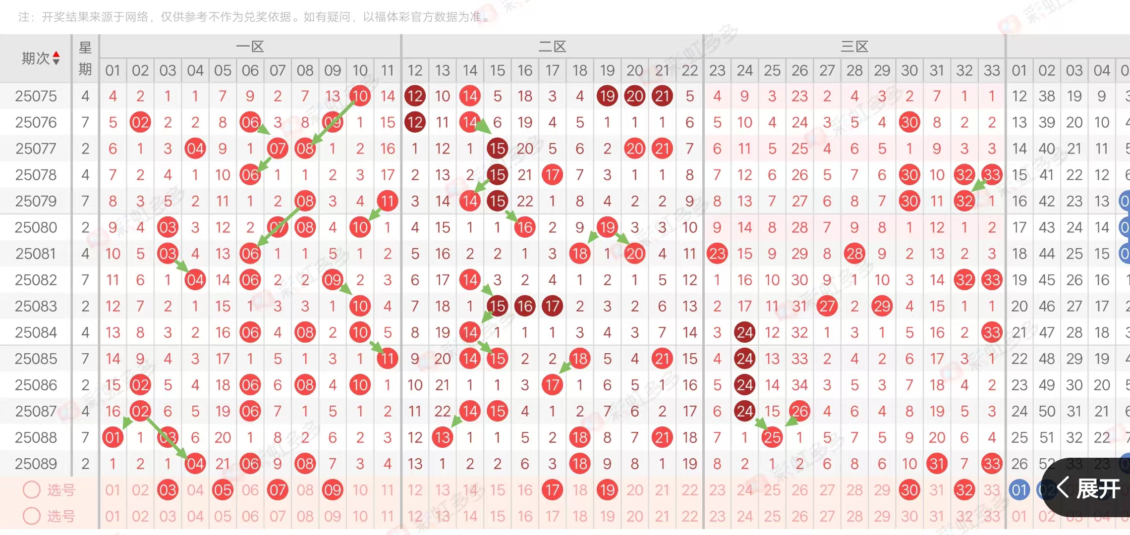 (三区:一区1-11,二区12-22,三区23-33)上期三区比3:1:2