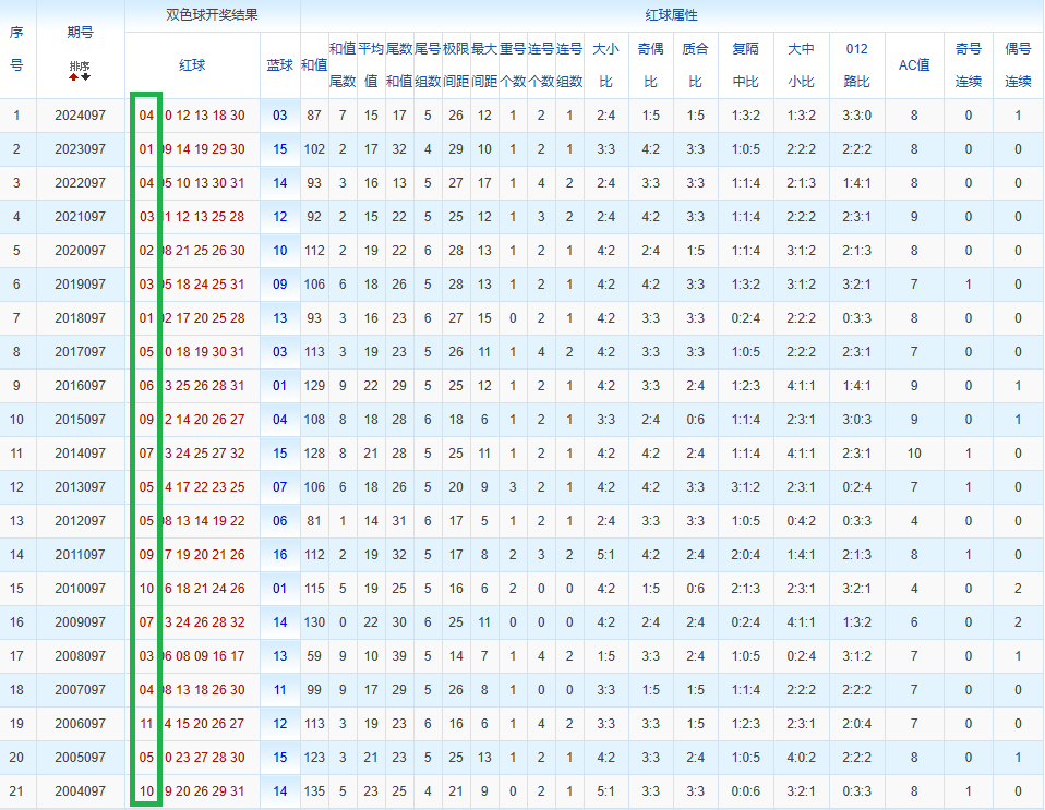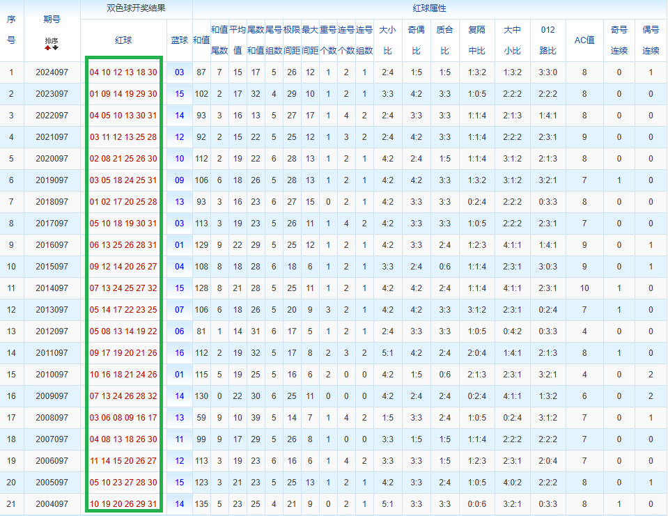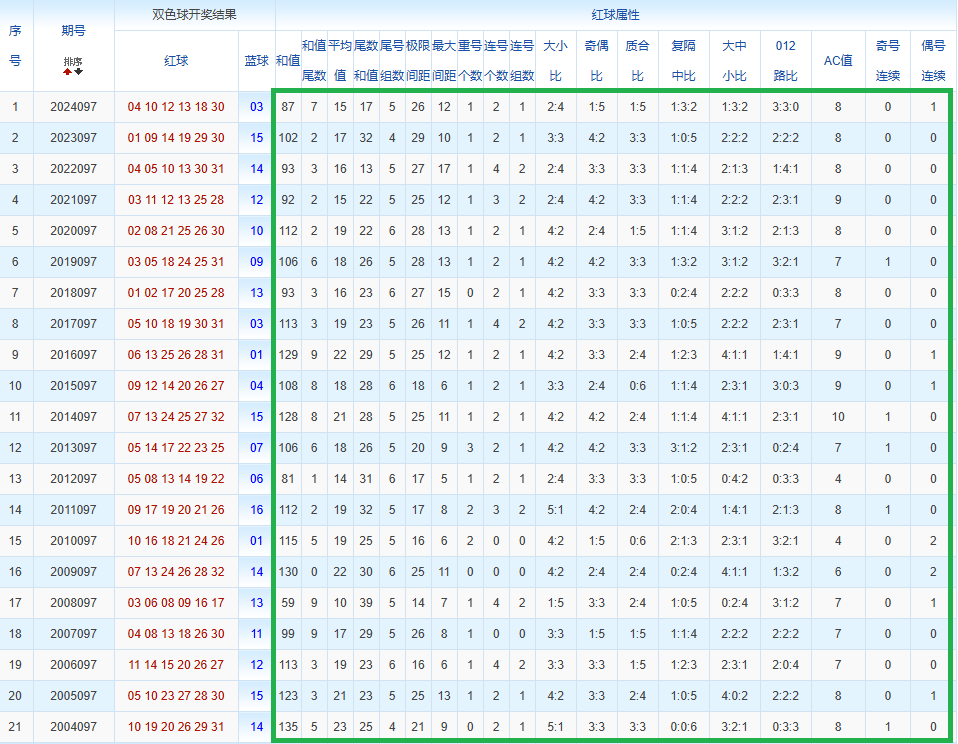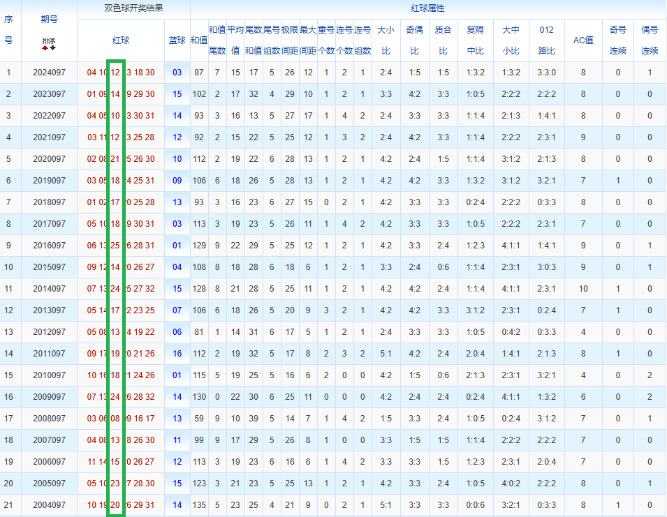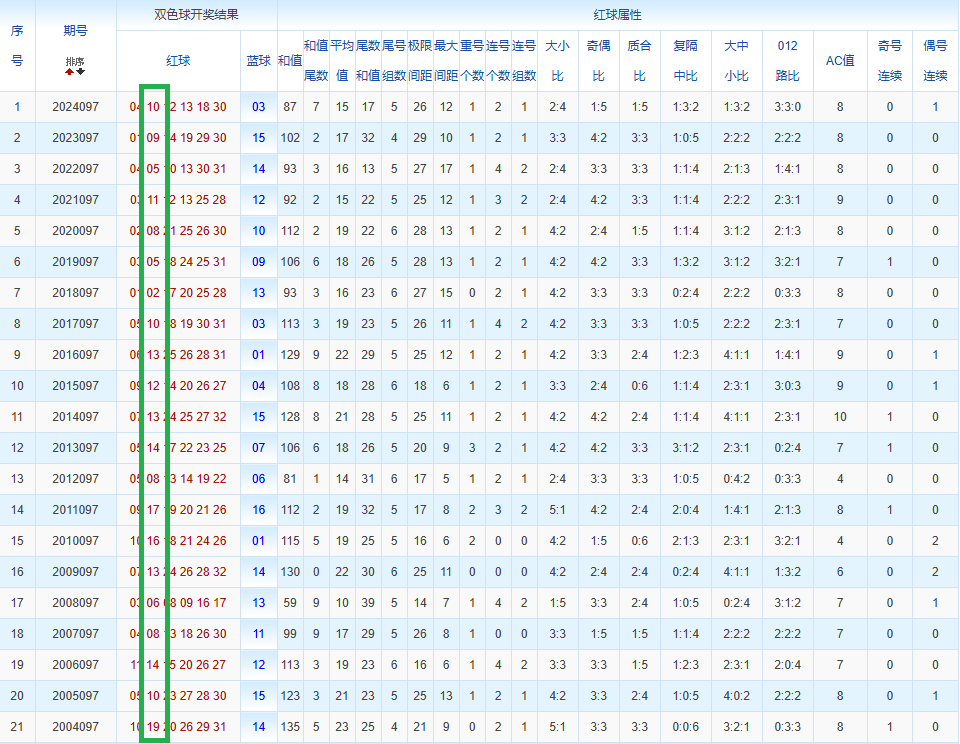 通过观察,我发现双色球往年同期的开奖数据与本期号码之间存在显著关联。具体来说,在红球中,从第一位至第六位,通常会有约4个位置上的数字与往年同期相同位置的号码一致;而蓝球号码中,也有多期开奖结果直接包含了往年同期的数字。因此,我们可以借助往年同期各位置上的号码,作为分析本期开奖情况的重要依据。在此基础上,还可结合往年同期的其他相关条件,进行综合性的号码组合推荐。