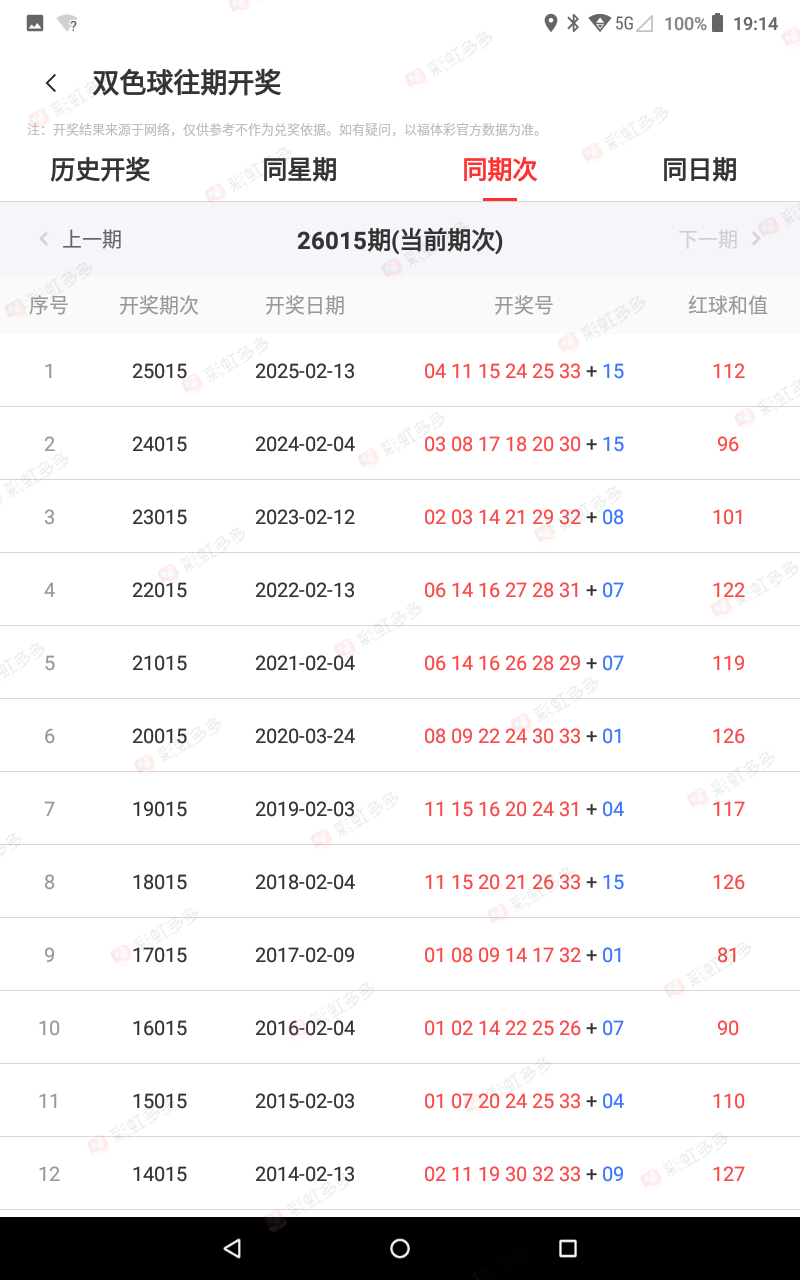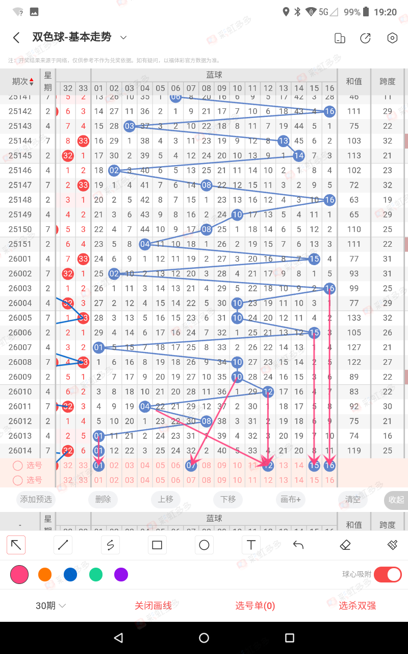 上期红5是26红6是32二个相加8尾,073-079-102-106期错,即014期我们06-16可以杀号