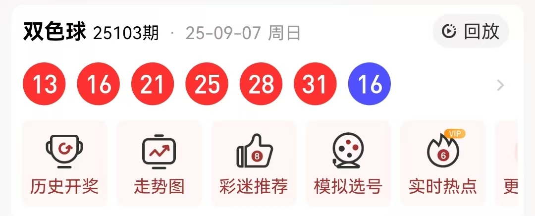 先来回顾一下第2025103期的双色球开奖结果:13 16 21 25 28 31+16,以下是对本期数据的详细分析: