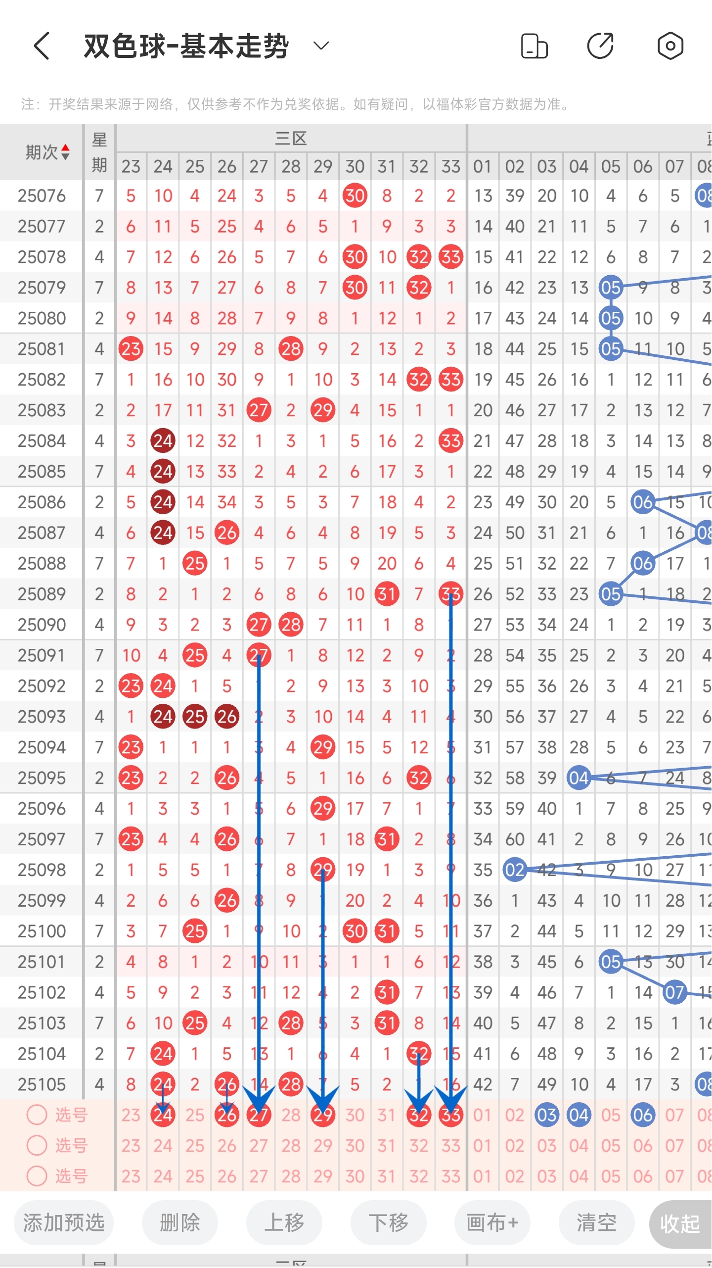 25104期双色球文章中推荐中命中0205323个红球。