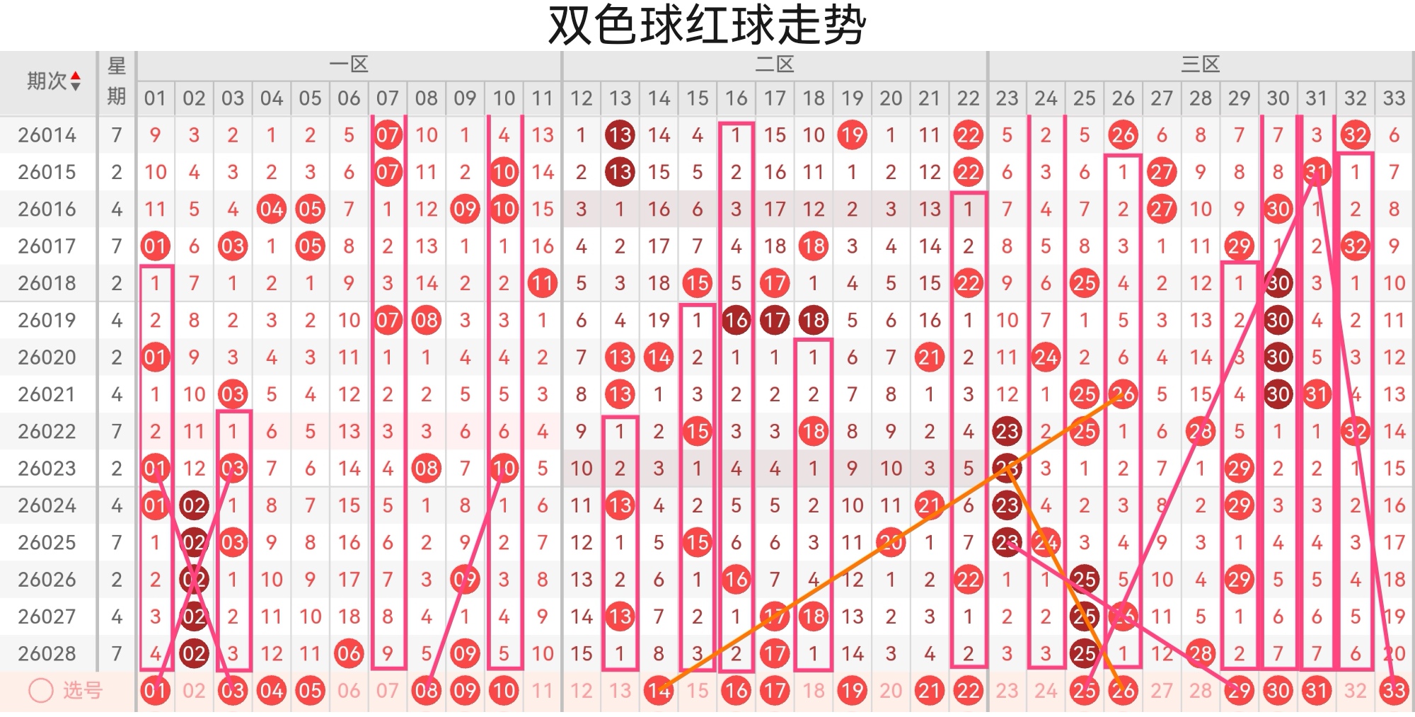 双色球第26029期基本走势分析如下: