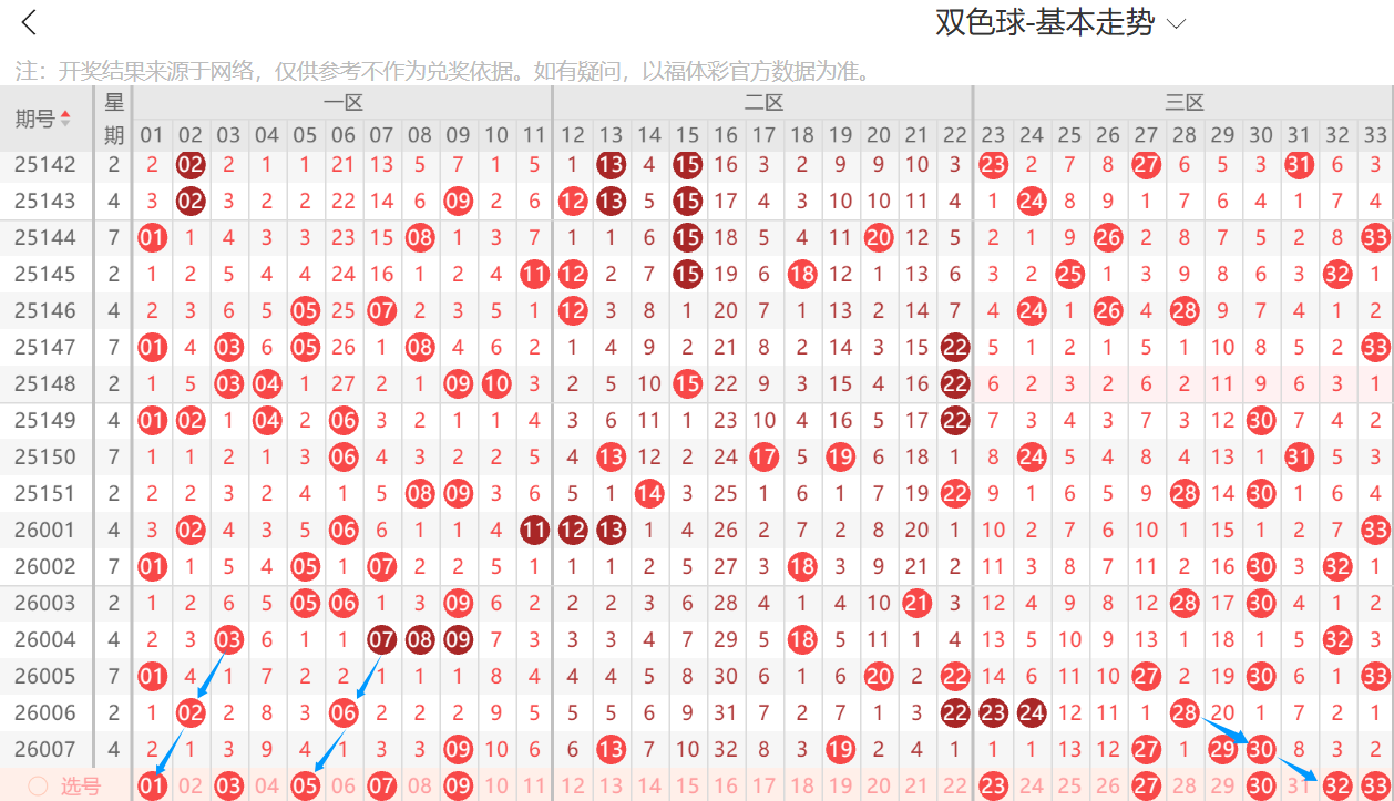 双色球2026008期分析,上期中胆码13,本期胆码32