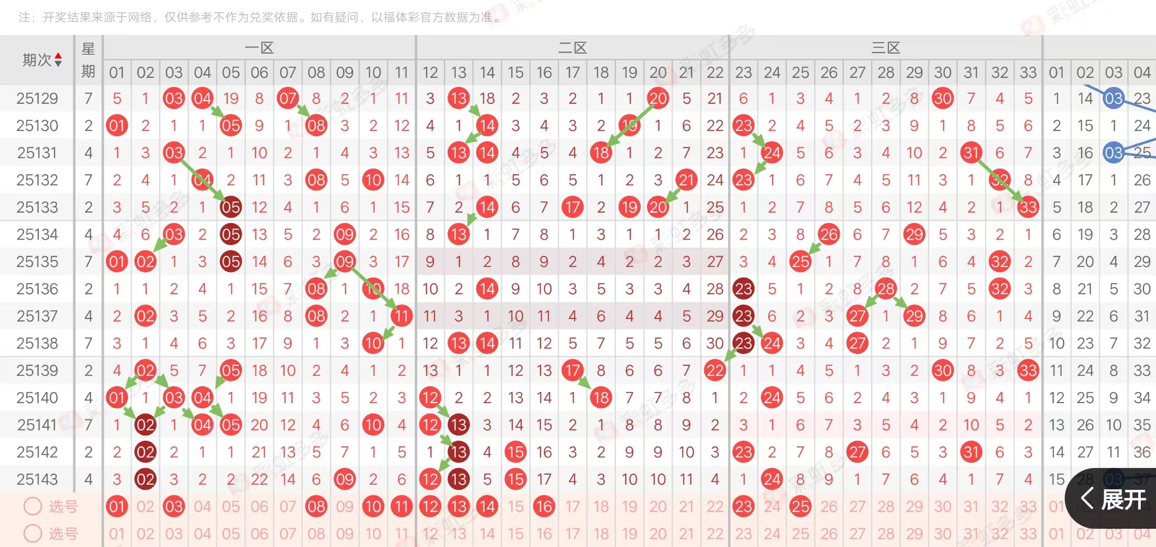 (三区:一区1-11,二区12-22,三区23-33)上期三区比2:3:1
