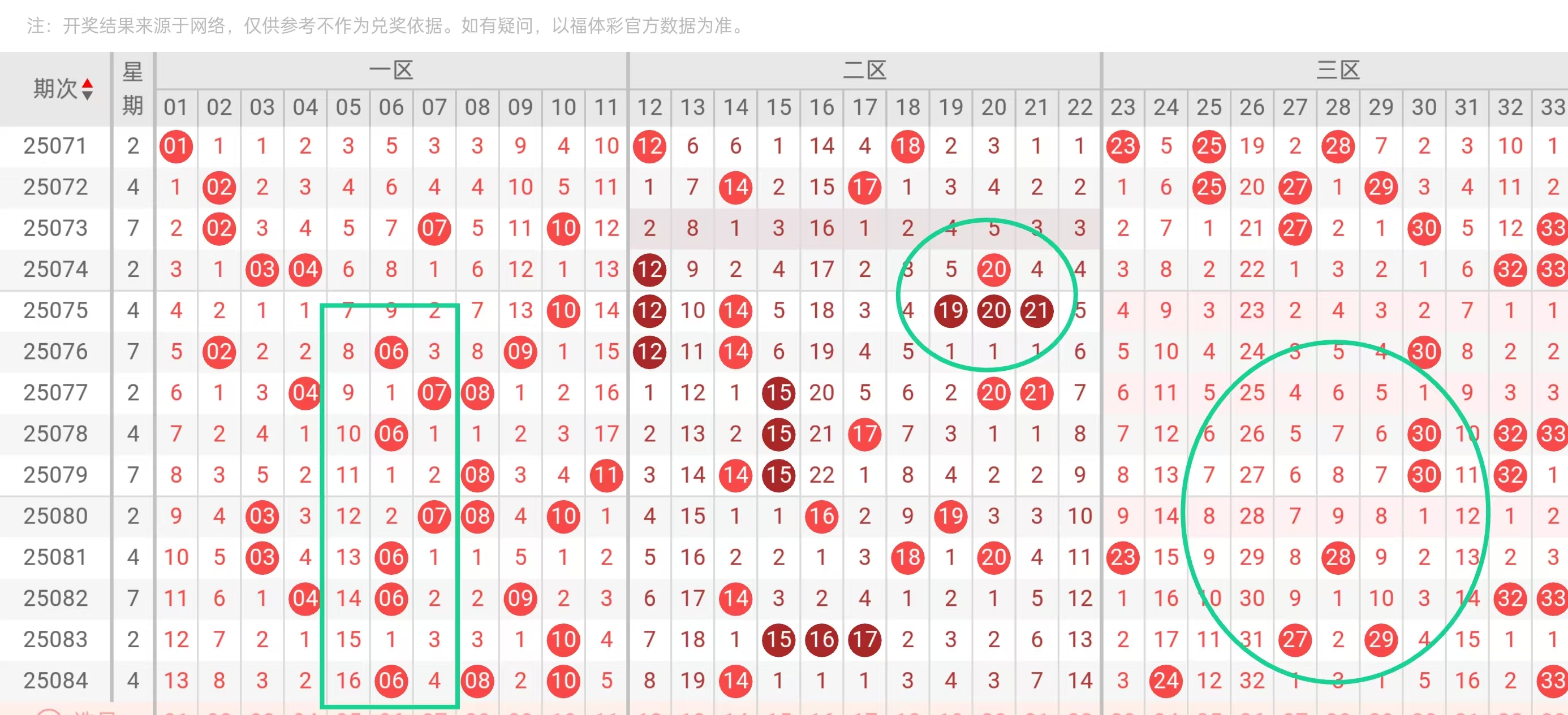 区间控盘:一区(06)、二区(10+14)、极区(33)形成 1:2:1 科学配比