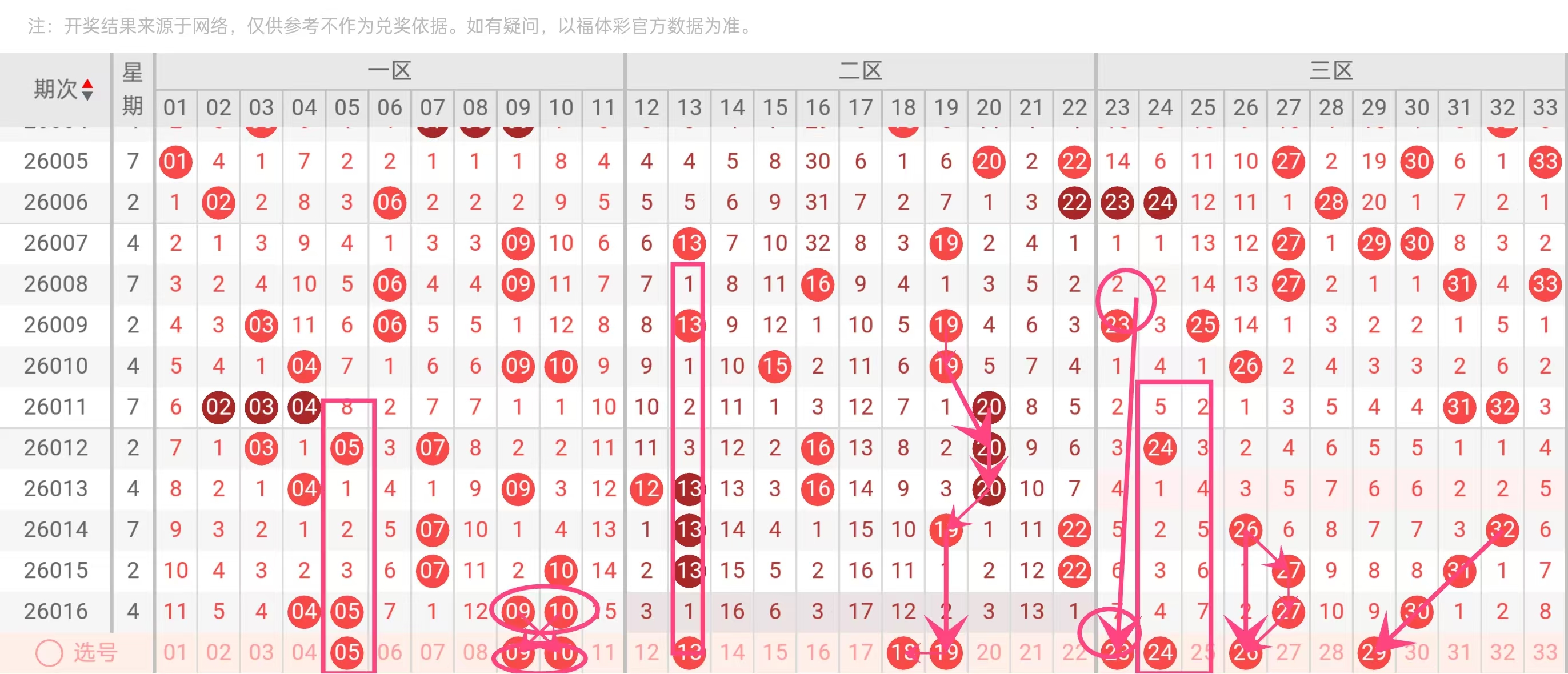 冷号遗漏:红球15、17、18、23、29、33等已多期未现,处于冷态区间。