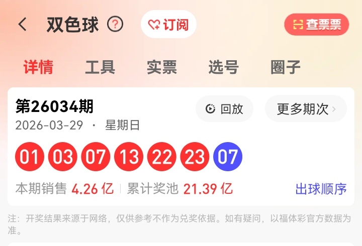 034期红球命中13、23两码