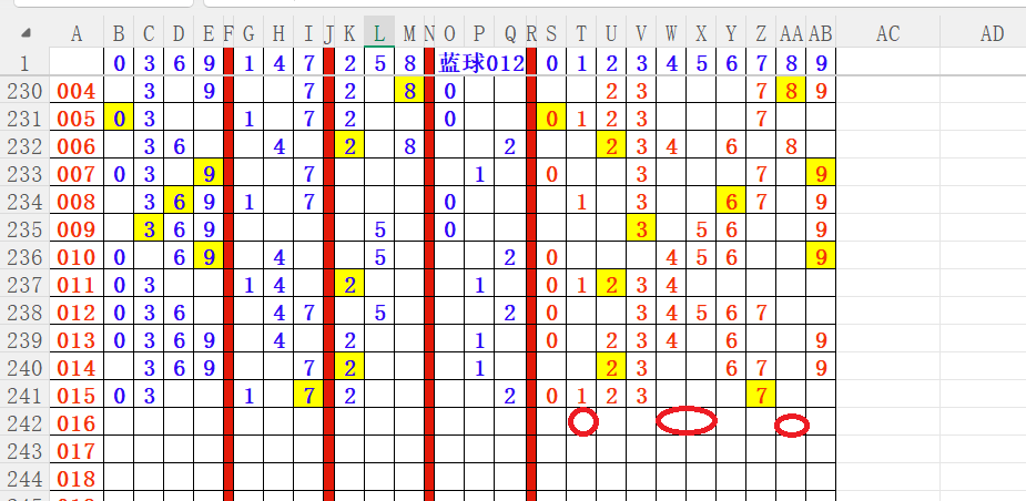 如上图4,012路分析012路,本期重点10路。重点 03 06 09 13 16