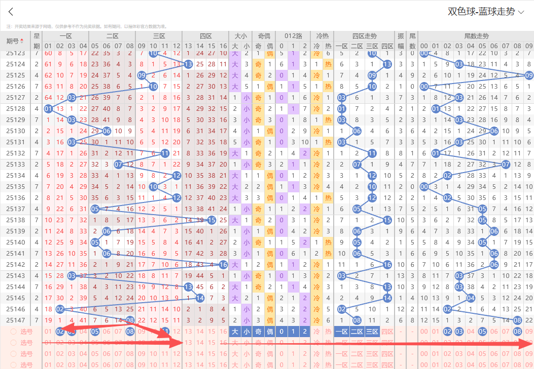一、红球特征分析:(通过整体走势不难看出每期开奖号都具备以下明显的特征点)