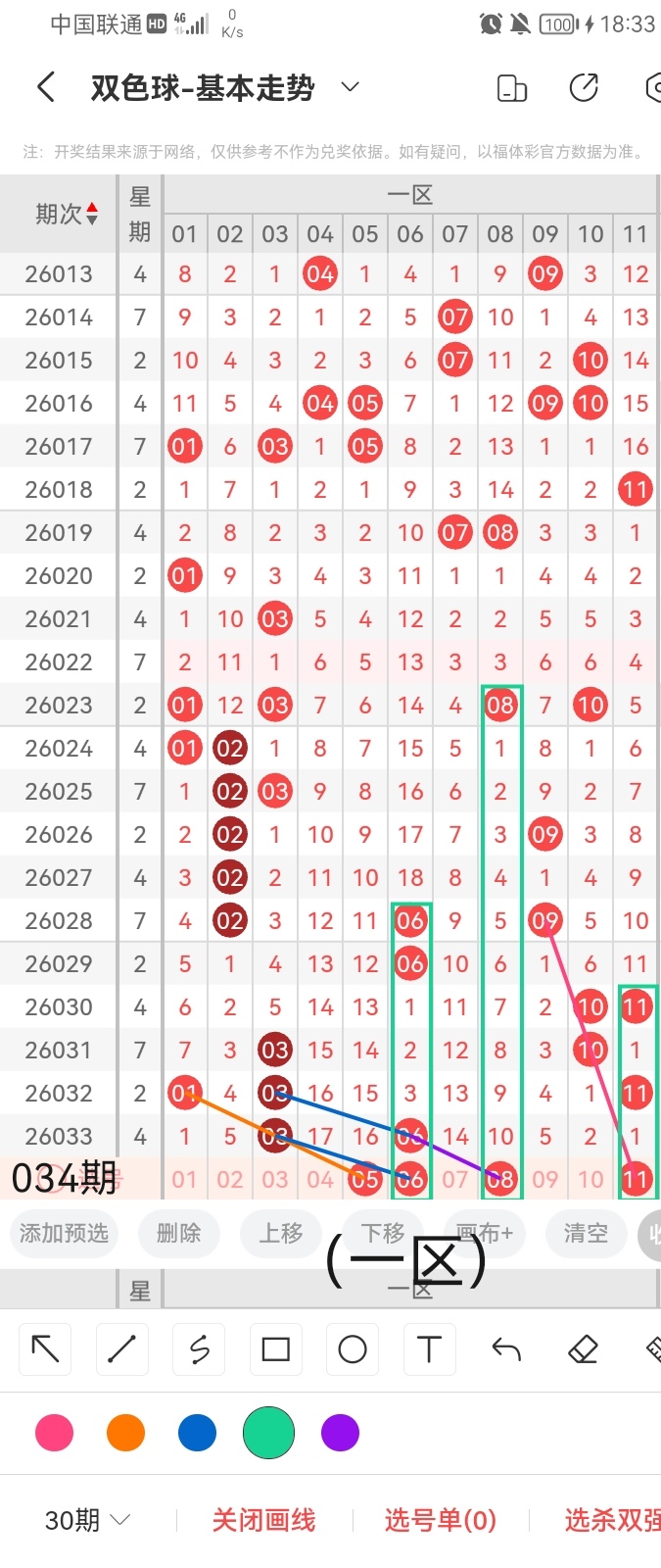 通过以上对上期的简单回顾,下面进入双色球第2026034期(下面简称本期)的选号分析: