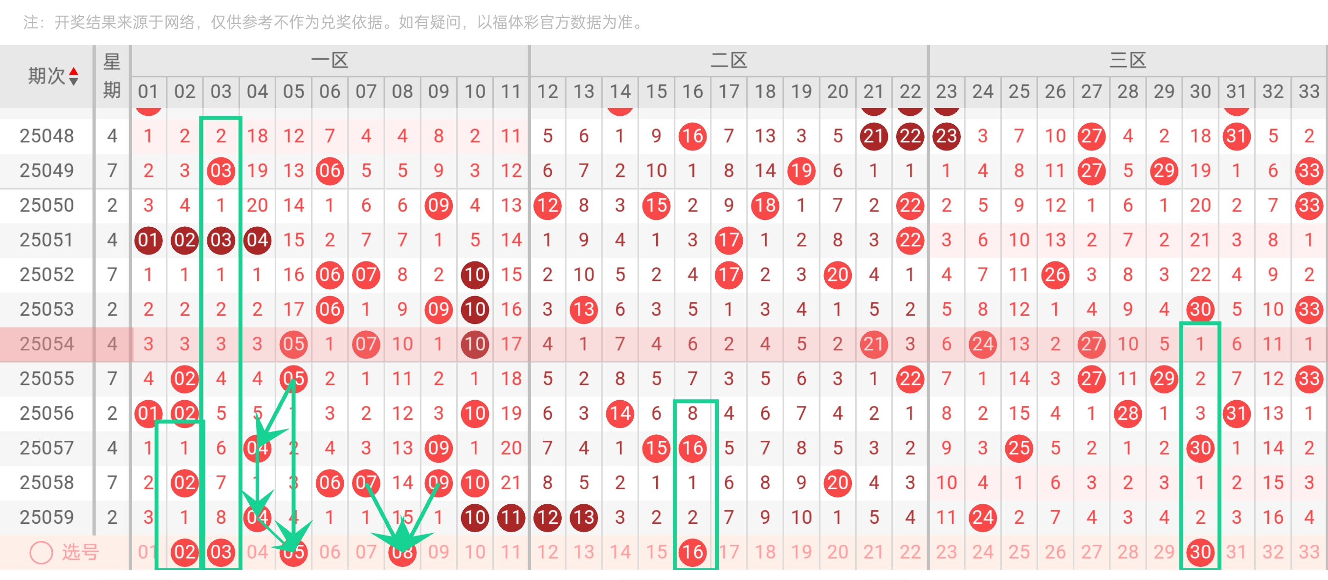- 23-33(大号):24、26、28、30、33,大号区高频号(26、30)与冷号(24、28)平衡。