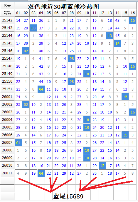 蓝球本期有热蓝7枚,冷蓝9枚,蓝球冷码数量稍多。上期开出冷蓝,由于近期蓝球冷热交替开出规律不明显,本期蓝球热码冷热难定。