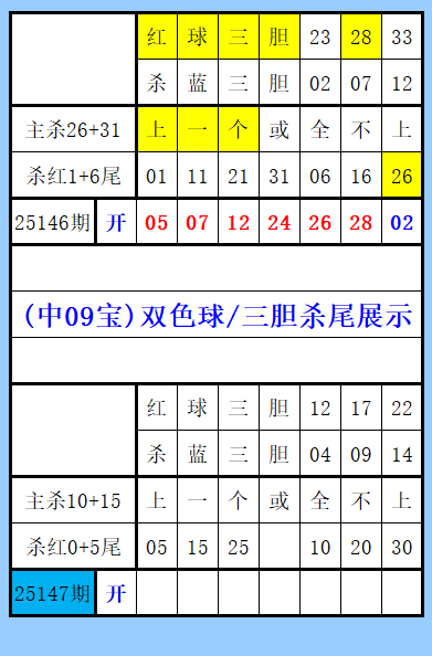 双色球(中09宝)三胆杀尾展示